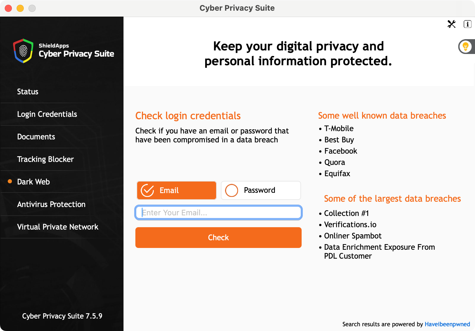 The dark web is scary. Our experts developed a scanning algorithm that searches for traces of your information that may be exposed in the dark web after known data breaches.